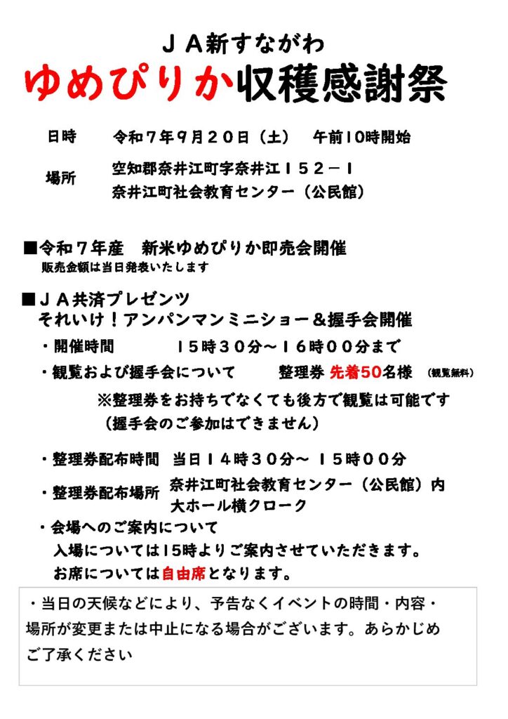 ゆめぴりか収穫感謝祭 9月20日(土)
